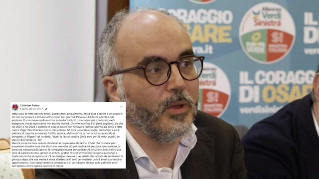 In un post pubblicato nel giorno di Pasqua Christian Raimo – autore di libri e candidato alle Europee con Ilaria Salis – “immagina” di risolvere il problema del il caro affitti con la ricina